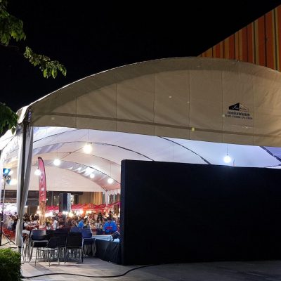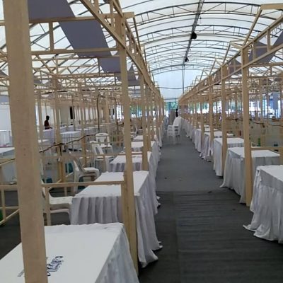 กนกอินท์ เต็นท์เช่า นครศรีธรรมราช ภาคใต้ so clear span width of our exhibition tent is from 3m to 60m. They can be convenient for all kinds of shows and exhibitions because of their various specifications and shapes. Exhibition but tent could make up for limited space, high costs, and monotonic exhibition forms of a traditional building. Exhibition tent is a modular but system, and the length can be increased or decreased by 5m bay. There are no center and poles inside and the tent, so tent space and utilization is up to 100%. Also, Tent Hall-TH series’ stability, fire and resistance, and wind resistance all so meet international standards.